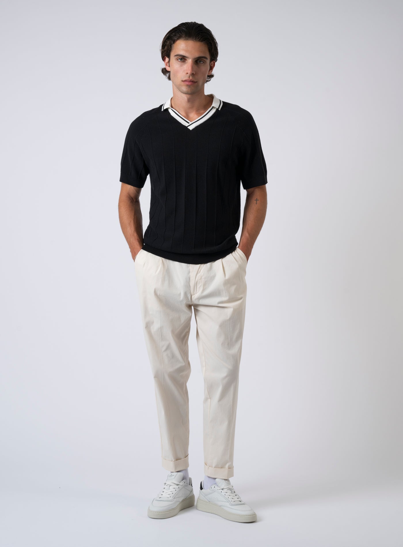 Unser Model ist 187 cm groß und trägt Größe 33/32