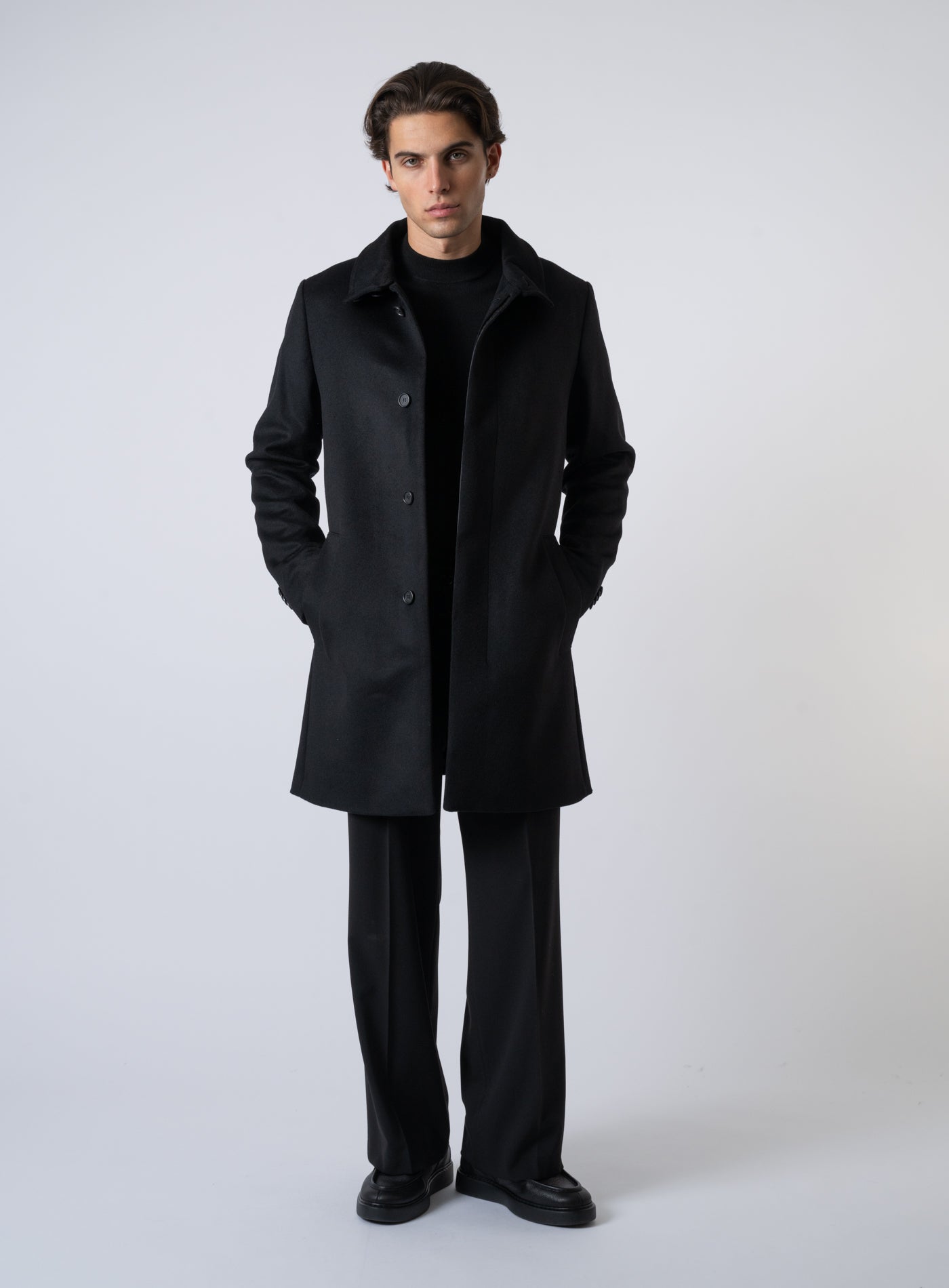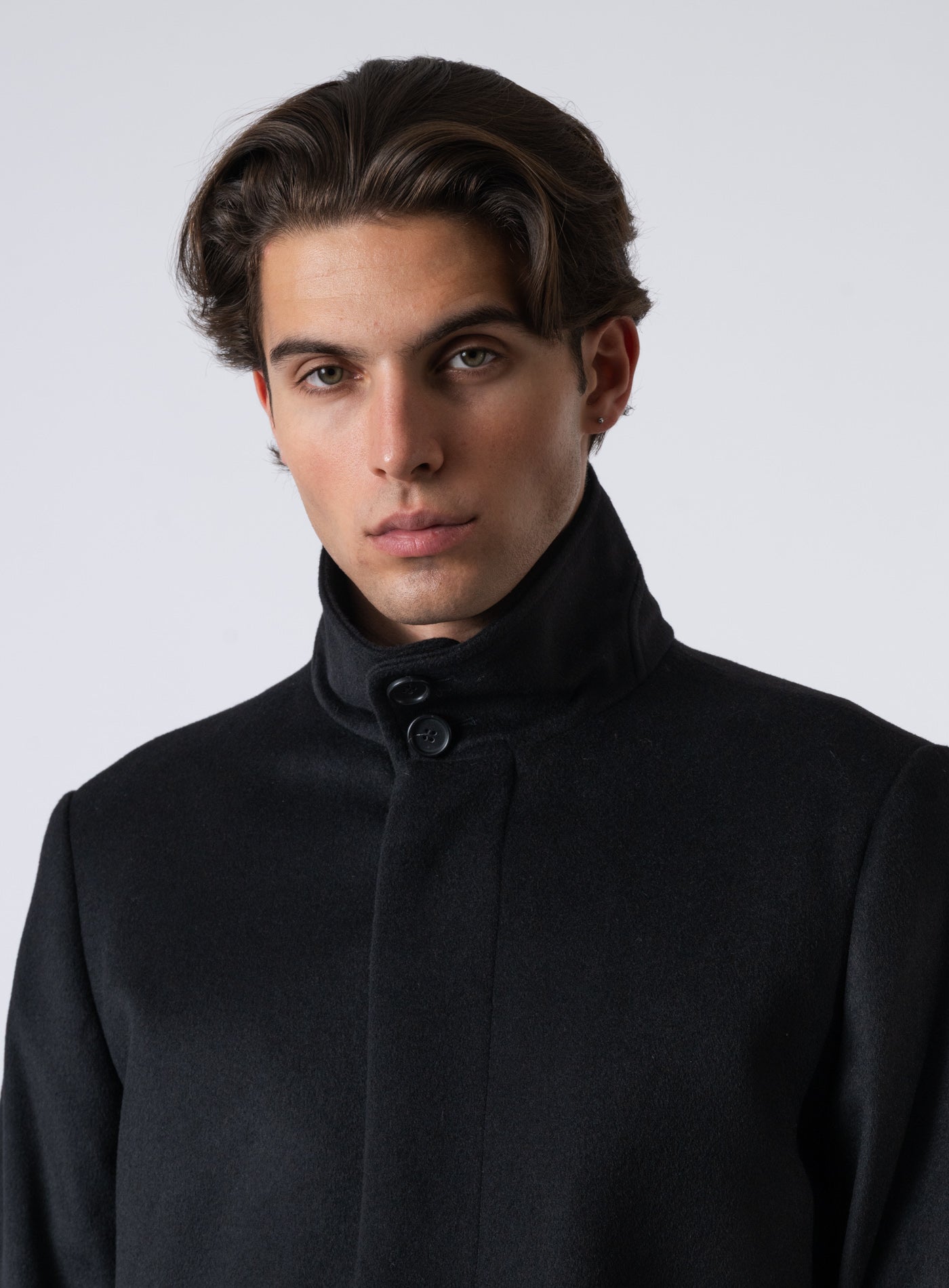 Aussenmaterial: 60% Wolle recycelt, 27% Polyester, 10% Kaschmir recycelt, 3% sonstige Fasern. Futter: 100% Viskose. Ärmelfutter 50% Viskose, 50% Acetat