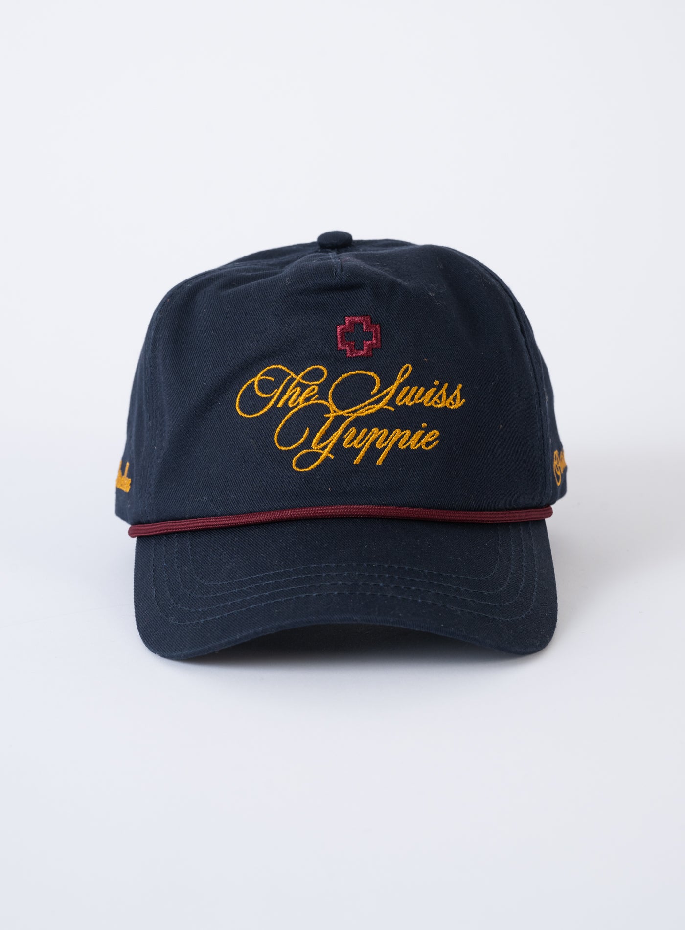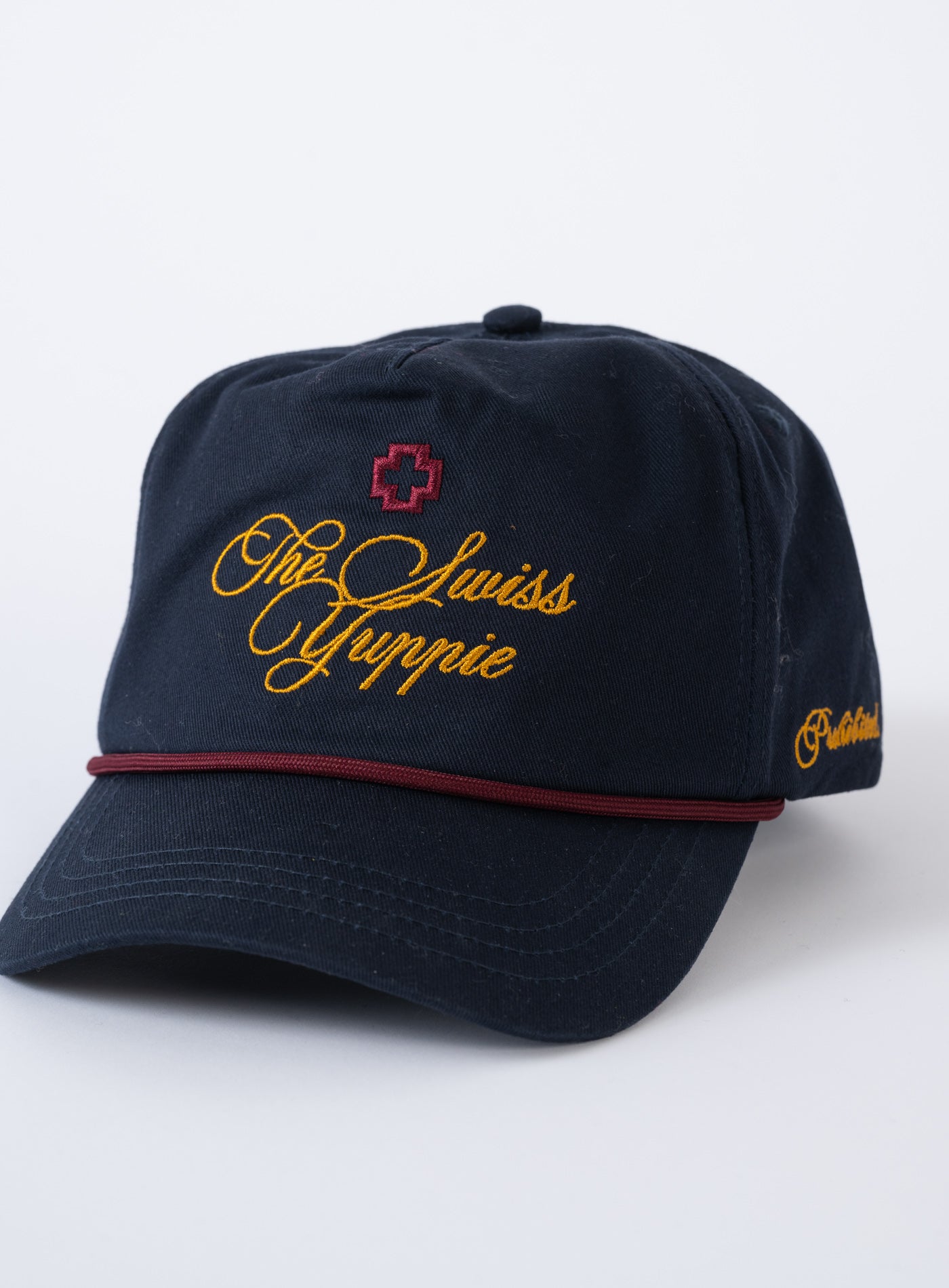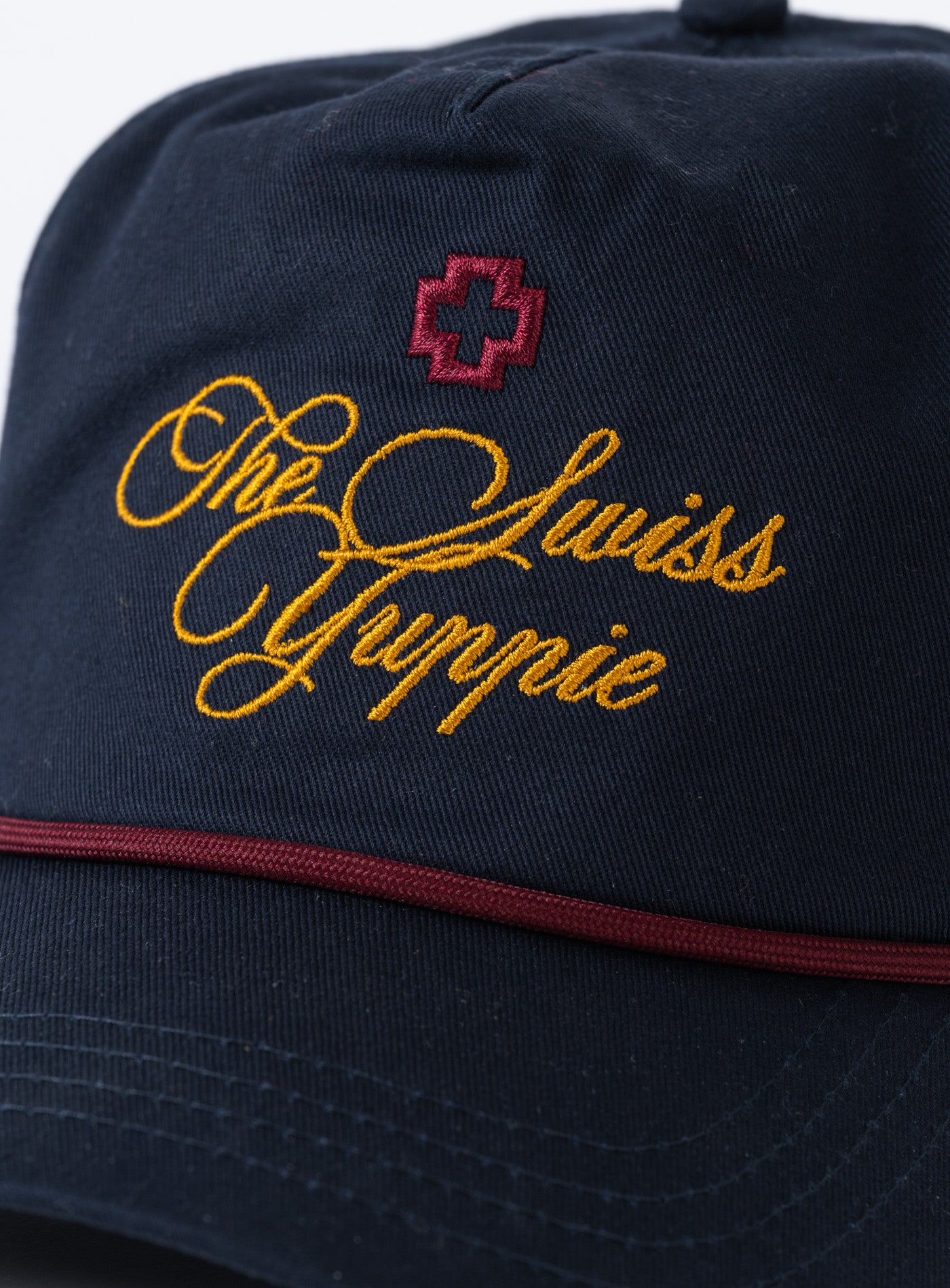 - „The Swiss Yuppie”-Logo-Stickerei vorne in der Mitte