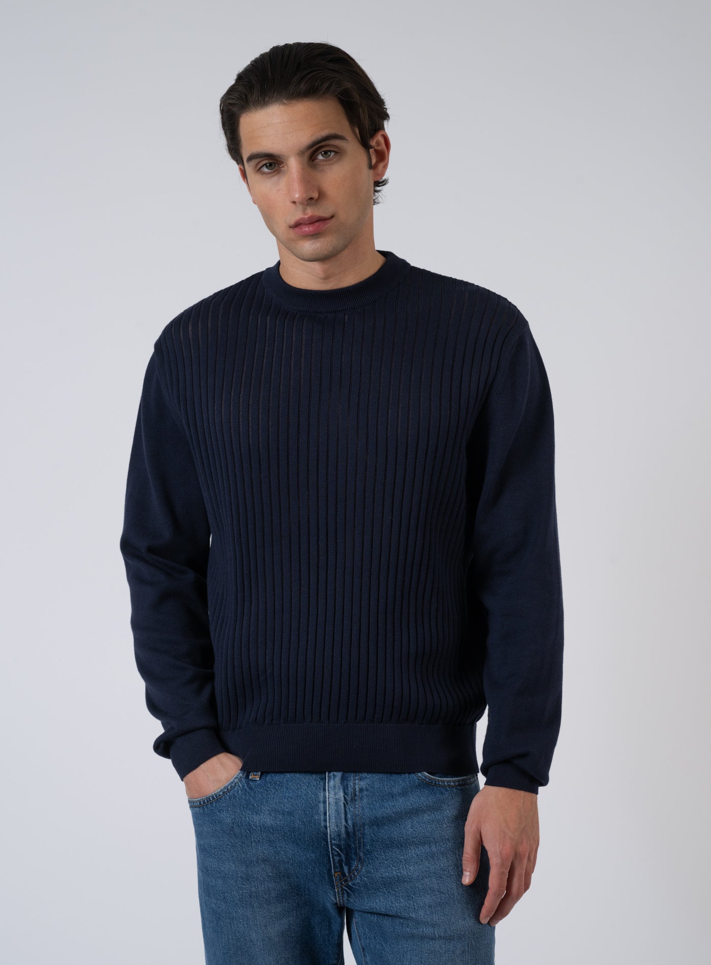 - Rippbündchen an Ärmeln und Saum